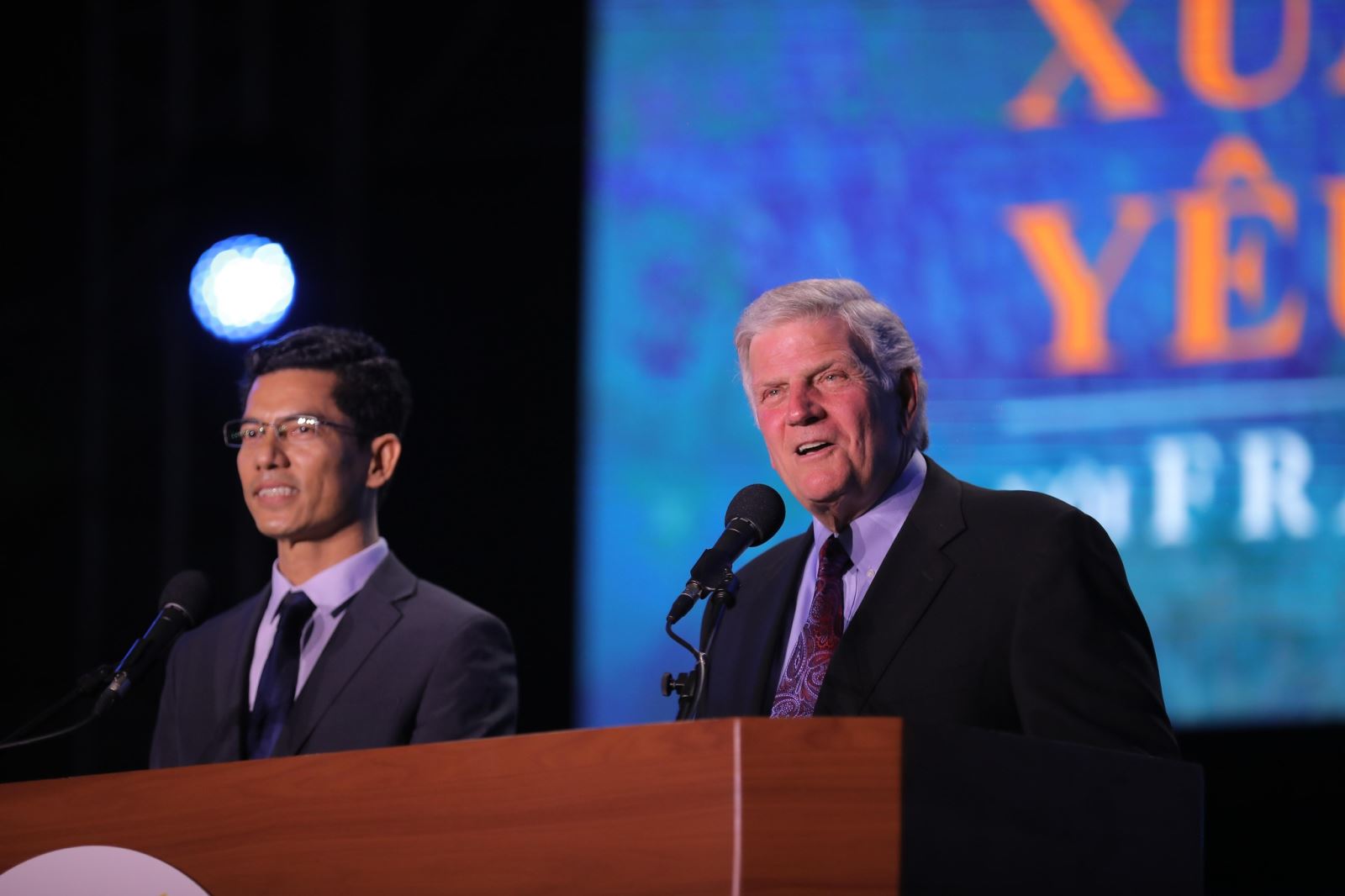 Mục sư Franklin Graham và Mục sư Lâm Thiên Lộc (người chuyển ngữ)