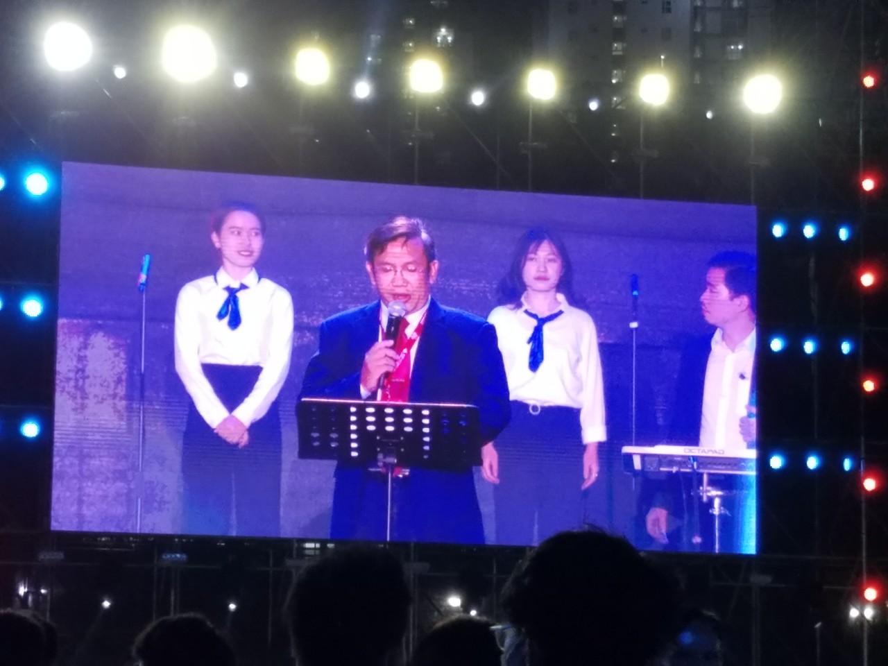 Mục sư Nguyễn Võ Khánh Giám, Chủ tịch Chương trình Xuân Yêu Thương chào mừng, tuyên bố lý do và phát biểu khai mạc tại Sân Vận động Phú Thọ, Quận 11, TP. HCM vào lúc 18 giờ 30 tối ngày 04/03/2023:
