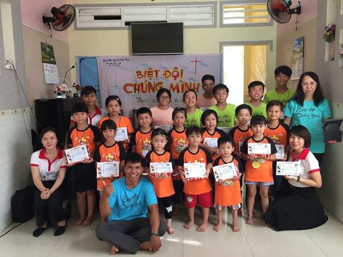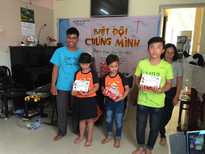 Cuối khóa học, các em được thi kiểm tra để chọn ra 03 em xuất sắc, đây là ba gương mặt tiêu biểu được tuyên dương trước lớp học. Hội Thánh có những phần quà gởi đến tất cả các em nhằm khích lệ tinh thần yêu thích học lời Chúa của các em.
