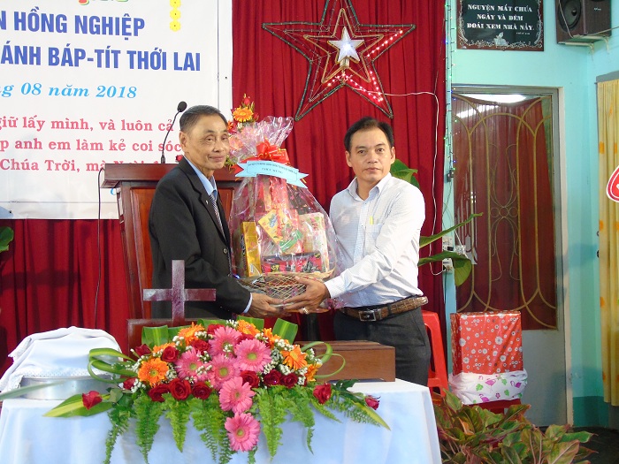 Ông Đoàn Văn Hiếu, đại diện Ban Tôn giáo TP.Cần Thơ tặng hoa chúc mừng